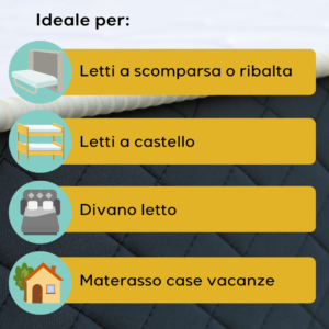 - Ideale per letti salvaspazio: perfetto per l’uso su letti a ribalta, letti a scomparsa e letti a castello, grazie alla sua flessibilità e leggerezza, senza rinunciare al comfort.